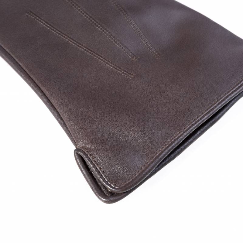 Der feine SEEGER Handschuh Cupido in dunkelbraun ist ein eleganter Herrenhandschuh aus weichem Lamm-Nappaleder, gefüttert mit einem weichen, wärmenden, hochreinen Kaschmirfutter. Der Handschuh hat eine klassische Aufnaht mit drei Riefchen. Der Handschuh hat einen geraden Abschluss und zum leichteren An- und Ausziehen einen seitlichen, umsäumten Schlitz.